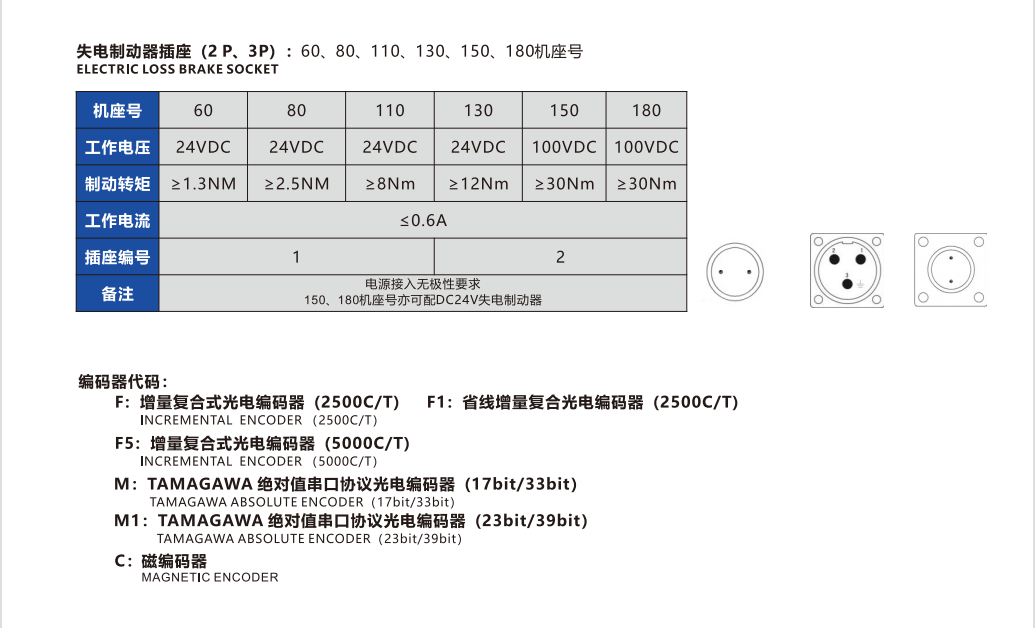 ⑴ 機座號 ⑵ 交流永磁同步伺服電機 ⑶ 反饋元件類型