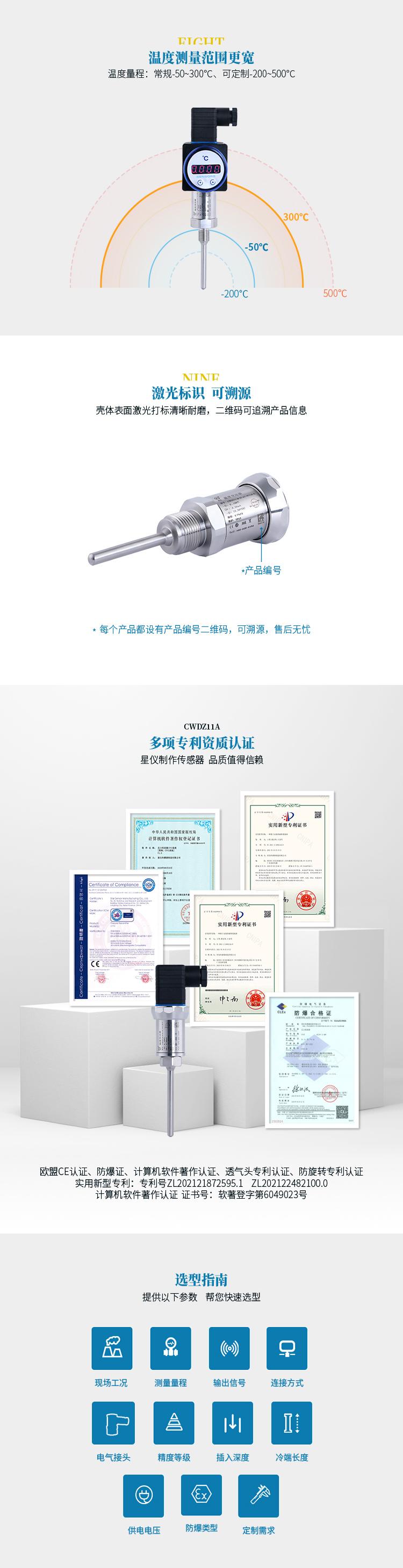 星儀CWDZ11A 溫度傳感器插入 一體化溫度變送器 PT100熱電阻