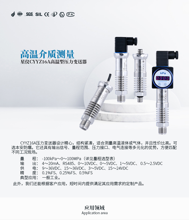 CYYZ16A壓力變送器設(shè)計精心,結(jié)構(gòu)緊湊,適合測量高溫液體或氣體,并且性價比高??蛇x本安防爆。