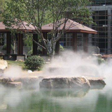 霧森系統(tǒng)將水霧化后,噴灑范圍廣、出霧均勻,且水霧的懸停時間延長,使空氣濕度加大,可有效減少浮塵的發(fā)生,因此可節(jié)省大量的人力、物力及水資源。噴霧安裝時可利用景觀,假山,綠植等,不需另外再布設(shè),因此施工時工程量小。